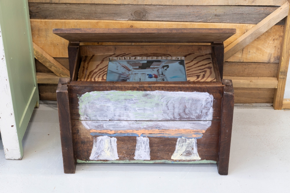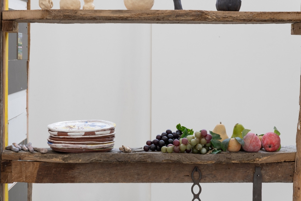 Au milieu de la nuit, on a entendu un fruit dans la cuisine. Un grignotin est passé par là ; ce n’est pas Martin, ce n’est pas Margaux, ce n’est pas Flore ni Antoine ; il y a d’autres occupant·es dans la maison de Pleux. Certain·es frappent avant d’entrer. Iels tapotent au carreau quand la nuit est tombée. Iels retrouvent celleux qui sont rentré·es par la porte, par la cave, les plinthes. Une fois dedans, on observe celleux qui préfèrent rester dehors : les frelons, les champs, la grange, des chaussures, le grand Cédric qui meurt en silence. L’exposition Pleux est un portrait non-exhaustif de toustes celleux-ci.